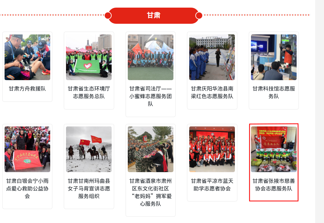 近期,中央社會(huì)工作部會(huì)同21個(gè)部門和單位共同組織開展的2024年度全國(guó)志愿服務(wù)“四個(gè)100”先進(jìn)典型宣傳活動(dòng)進(jìn)入事跡展示階段,其中張掖市有4個(gè)先進(jìn)典型入選事跡,張掖市慈善協(xié)會(huì)憑借在志愿服務(wù)領(lǐng)域的突出貢獻(xiàn)和示范引領(lǐng)作用,成功入選“最佳志愿服務(wù)組織張掖市慈善協(xié)會(huì)志愿服務(wù)隊(duì)”。