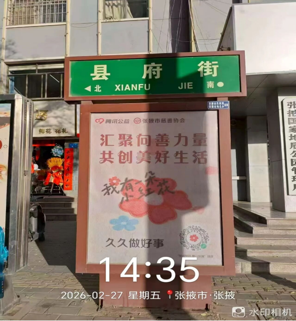 路名牌指引方向,小紅花傳遞溫暖,自2025年11月-2026年2月,張掖市甘州區(qū)城市主次干道20個(gè)小紅花路名牌,呈現(xiàn)在市民的生活中。當(dāng)市民步履匆匆穿梭街頭,當(dāng)游客駐足辨別方向,這抹藏在路名牌上的紅色善意,便會(huì)悄然映入眼簾,將“向善而行”的理念悄悄傳遞。讓新春的張掖,既有煙火溫情,更有公益力量。